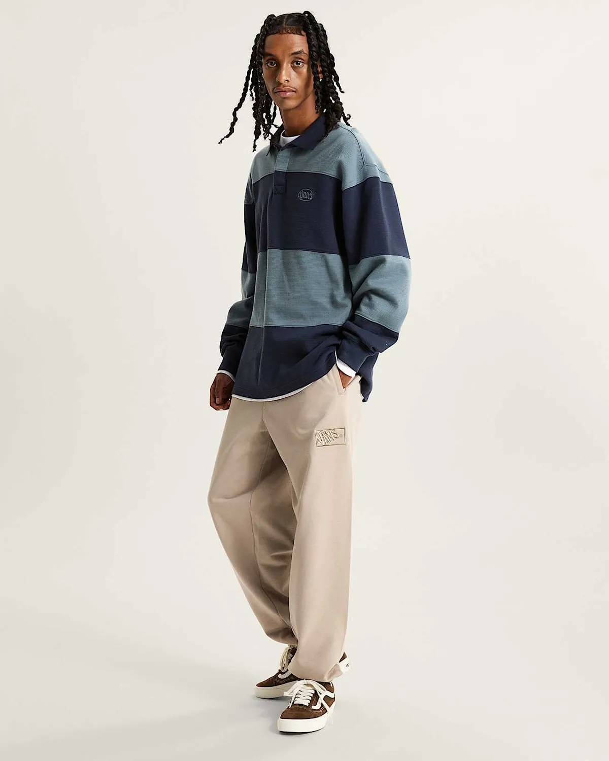 Подобрете най-необходимото си с боксовите анцузи Vans Bloked – класически отпуснат модел с еластична талия, плисирани маншети за глезена, предни джобове с цепки, заден джоб с дупки и блокирано боксово лого на горния ляв крак. Те са проектирани с свободен кройка за по-голям комфорт и отпуснато усещане.