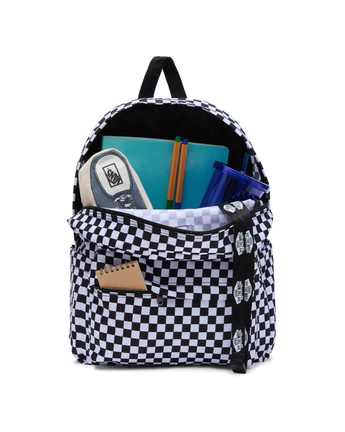 Старата раница Skool Checkerboard издига стила ви на носене на следващо ниво с отличителен мотив, който никога не избледнява. Оборудван е с отделение за лаптоп, подплатени раменни колани и вътрешна организация, проектирана за ежедневна употреба, и носи ДНК на Vans Checkerboard — всичко направено от 100% рециклиран полиестер.