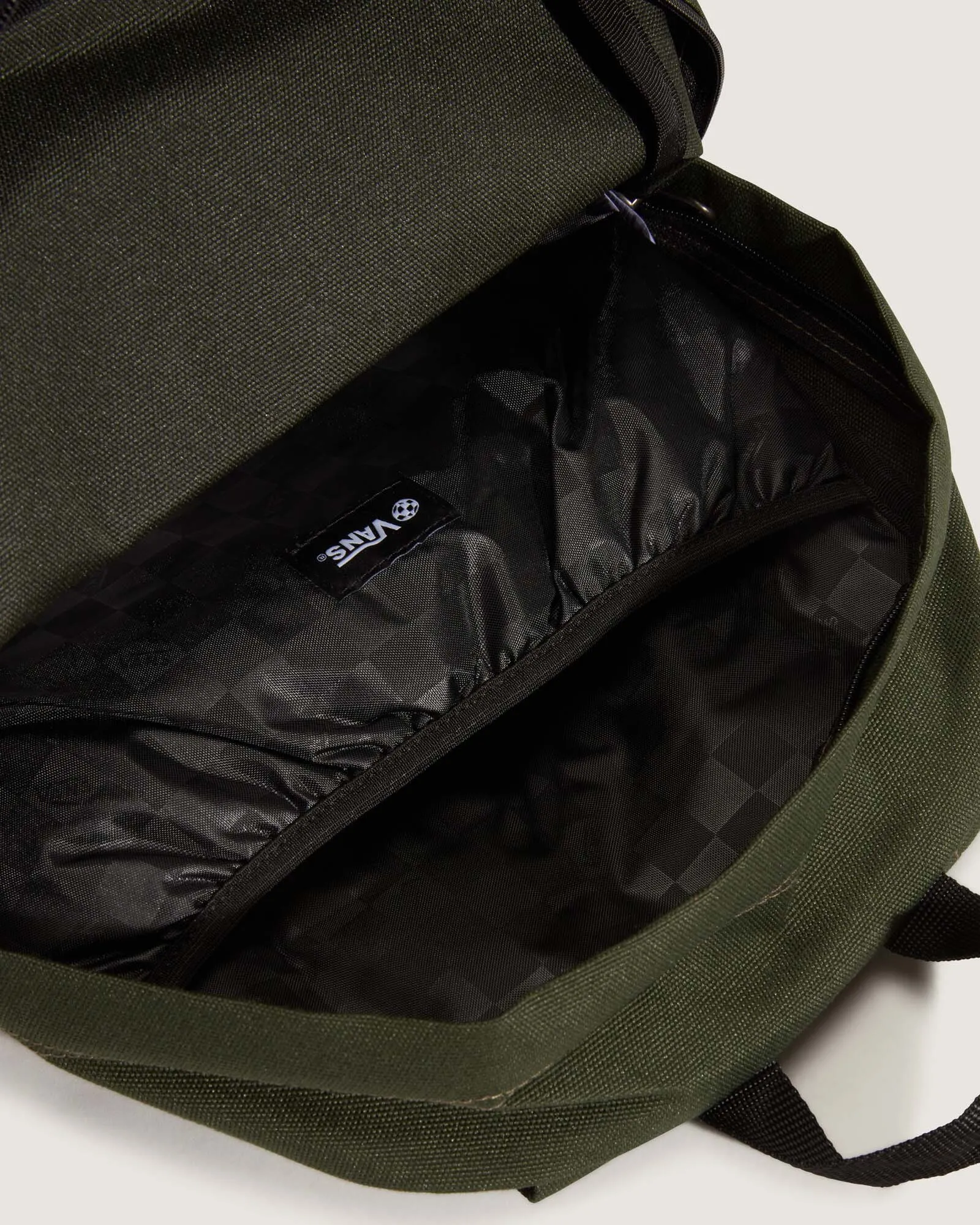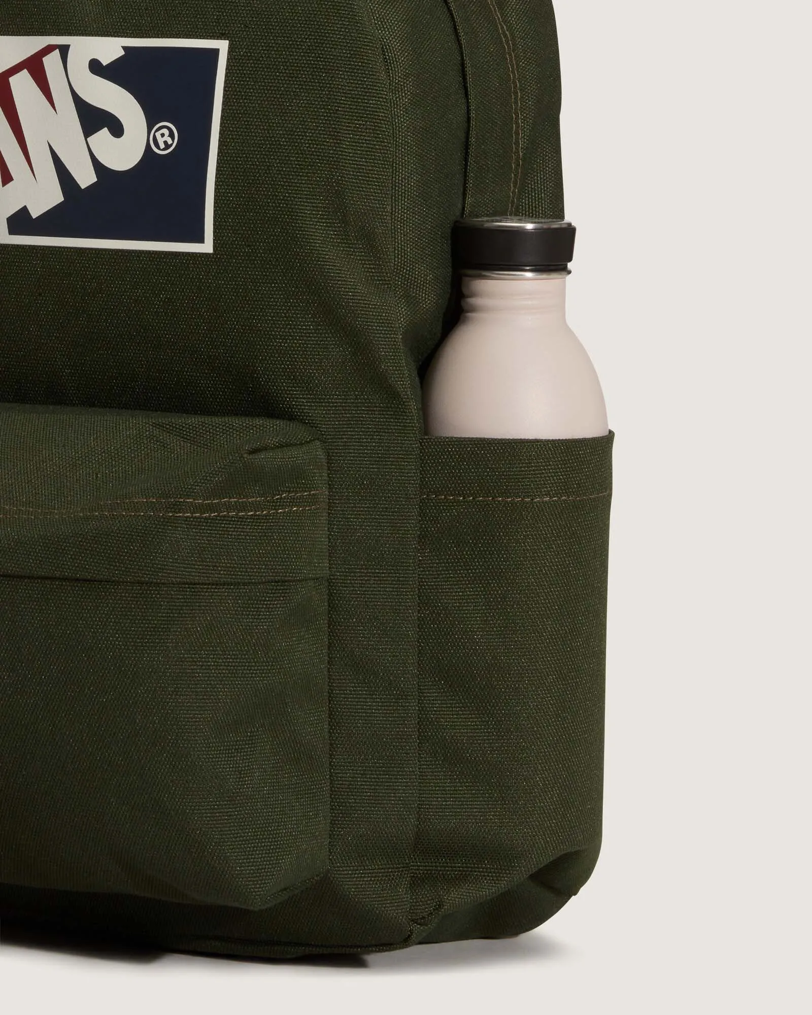 Класическа раница с много от ДНК-то на Vans, Old Skool Grom Backpack има дизайн с два джоба, включващ органайзер, за да държите важните си вещи спретнато подредени, и страничен джоб за бутилка с вода за лесна хидратация. Този дизайн се отличава с преработено лого на Vans отпред и карирана лента в тон в тон.