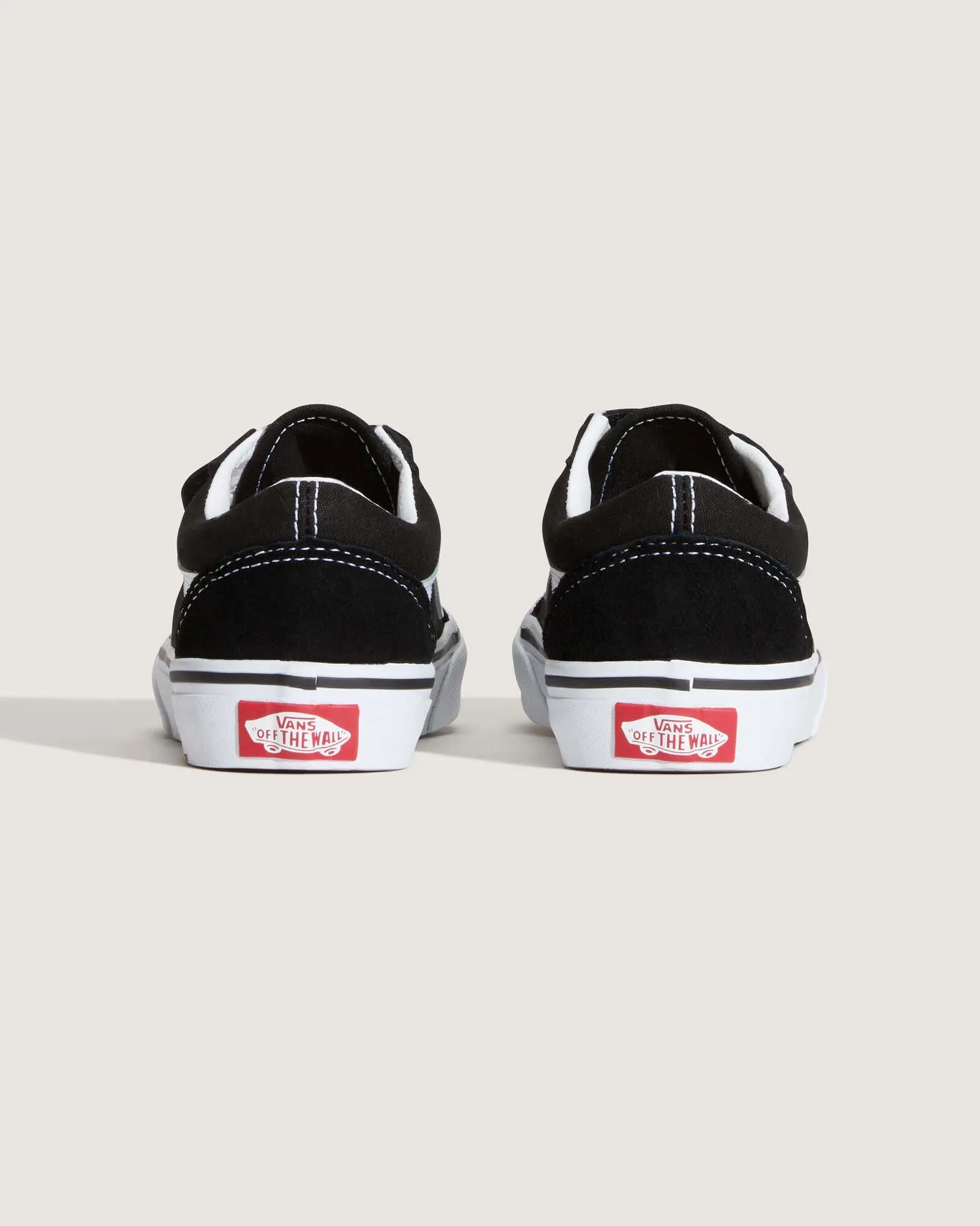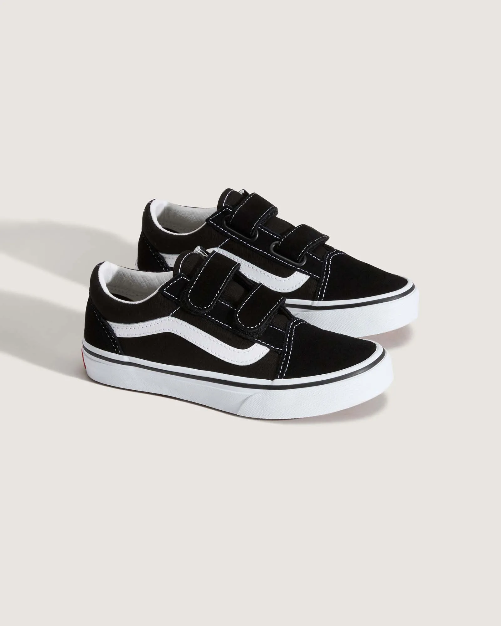 Детските обувки Kids Old Skool V преосмислят емблематичните ни обувки Sidestripe, като заменят традиционните връзки с двойни закопчавания с велур и плат. Изработени от емблематична горна част от велур и плат, тези ниски обувки запазват класическия си вид, като същевременно осигуряват лесно и сигурно прилягане, което гарантира комфорт през целия ден.